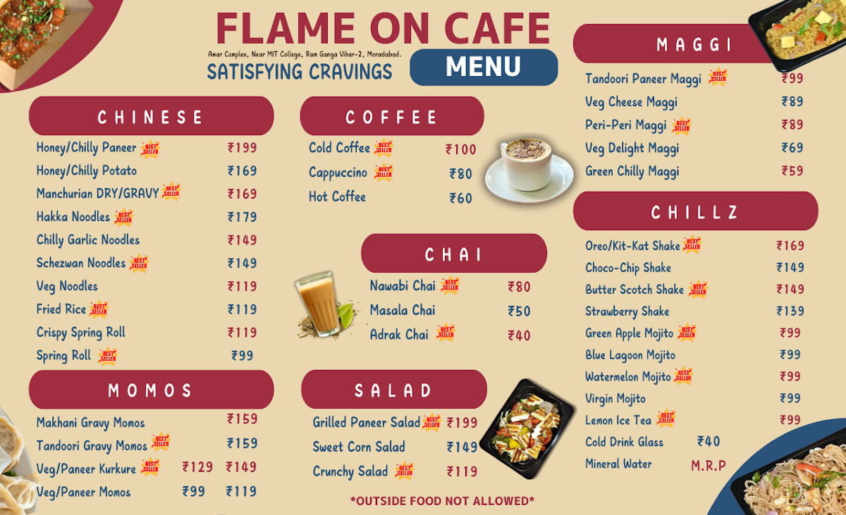 In conclusion, if you find yourself in Moradabad, make it a point to visit FLAME ON CAFE. Enjoy the wonderful food, outstanding service, and the friendly vibe that make this establishment truly special. Your tastebuds will thank you!